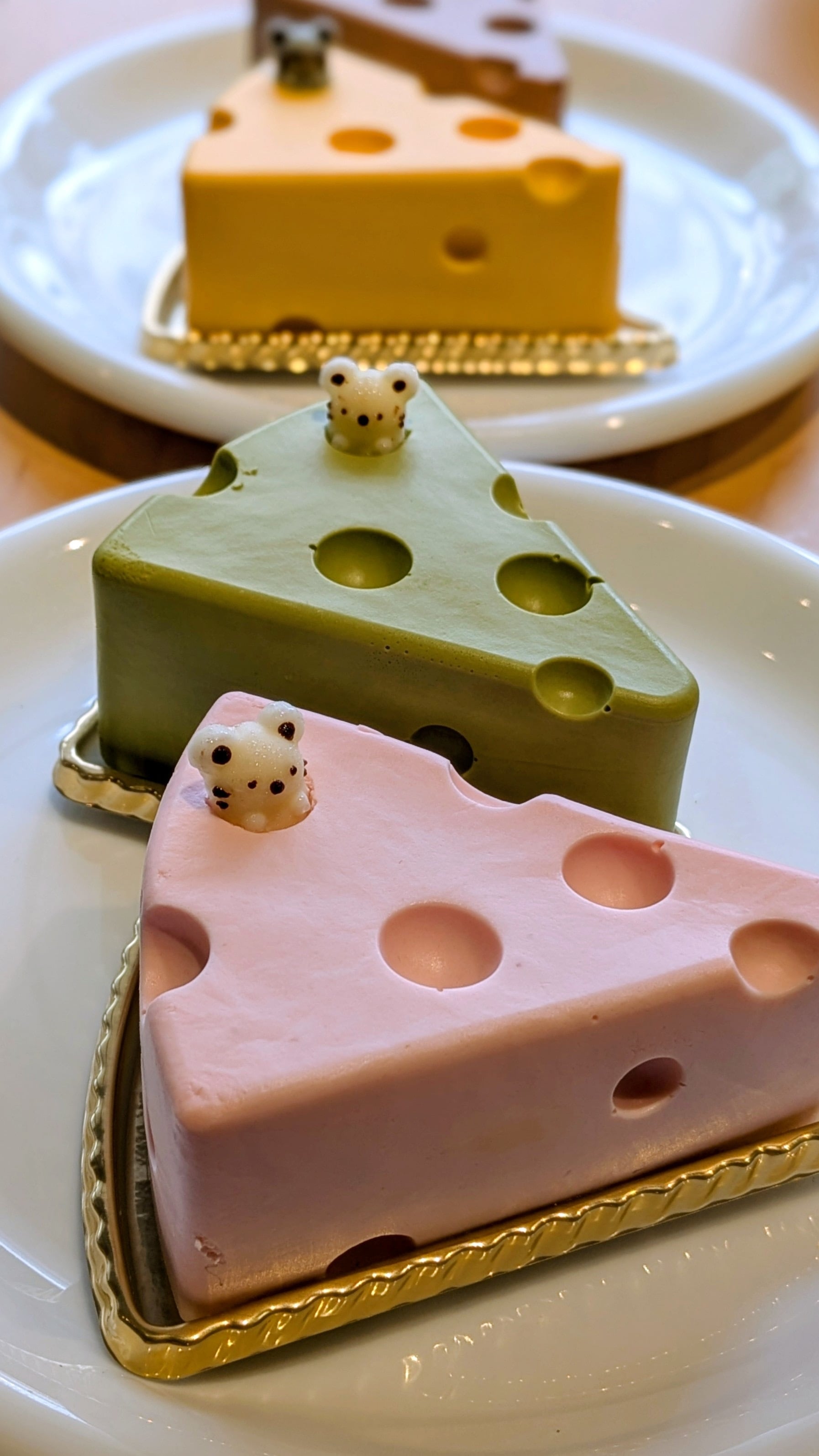 クリームチーズ、生クリーム、牛乳、砂糖、卵、小麦粉、チョコレート、いちごピューレ、マスカルポーネ、バター、リコッタチーズ、抹茶ペースト、ココア、イチゴ、ストロベリー濃縮シロップ、ゼラチン、ゲル化剤(増粘多糖類)、着色料(黄4号、赤102号)、(一部に乳成分・小麦・卵を含む)