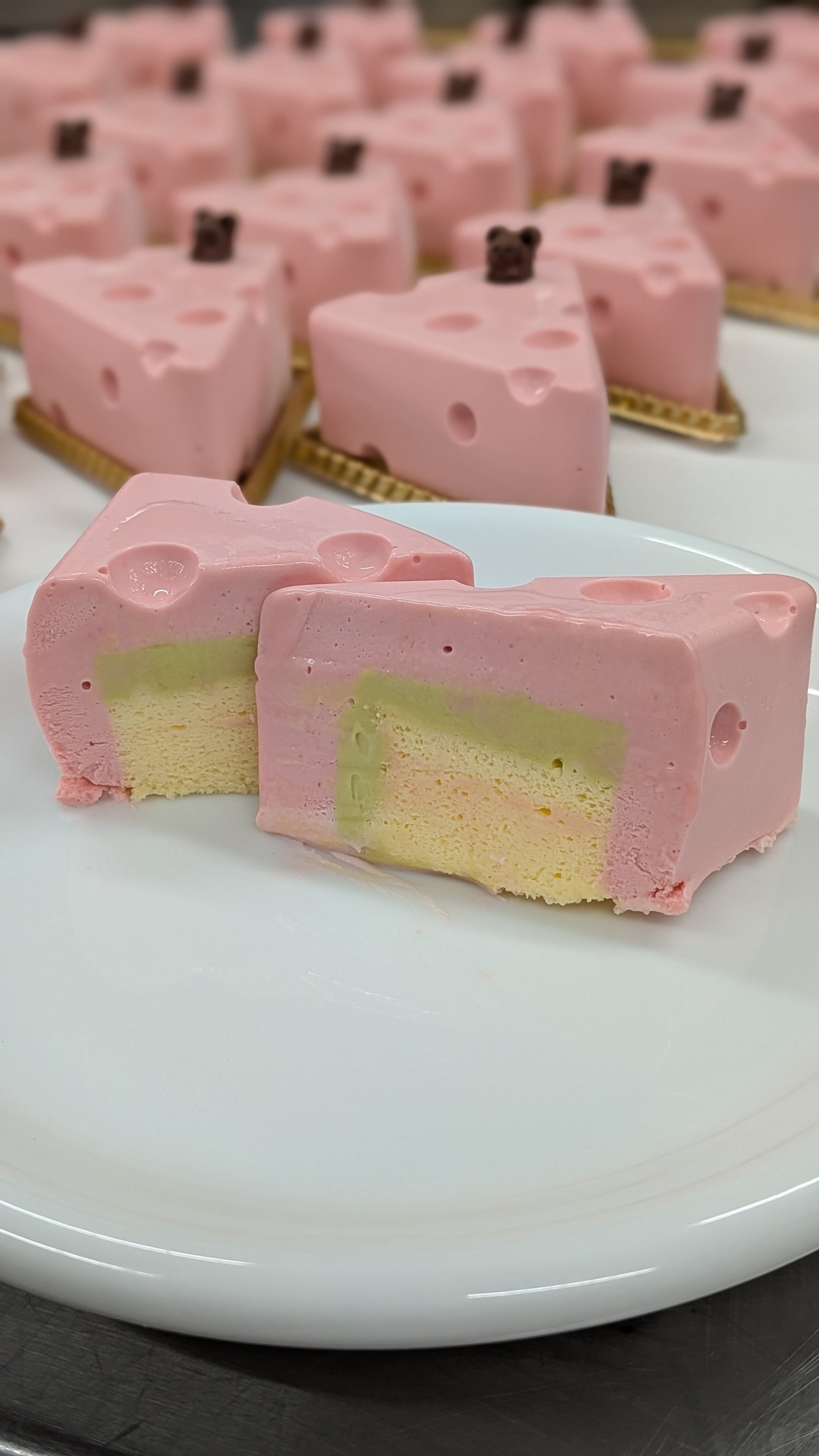 クリームチーズ、生クリーム、牛乳、砂糖、卵、小麦粉、ピスタチオペースト、バター、リコッタチーズ、ゼラチン、ゲル化剤(増粘多糖類)、着色料(一部に乳成分・小麦・卵を含む)
